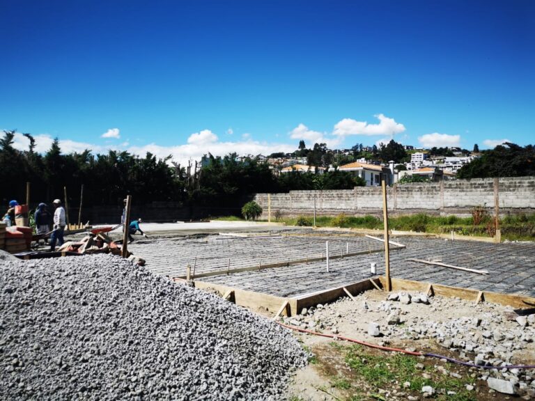 Posterior se coloca una malla electrosoldada sobre la cual se extiende material pétreo y finalmente se vierte el hormigón, es indispensable la colocación de tubos de drenaje. Una vez transcurrido el tiempo normal de secado del hormigón, se coloca la tierra contra los muros. De esta forma se garantiza el drenaje del agua que se acumula en estos lugares, siendo conducida a cajas de revisión en los lugares determinados en el proyecto.